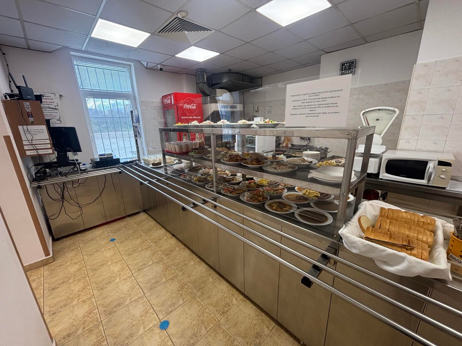 Студентският стол се намира в студентско общежитие Блок 1 и разполага с 60 места. Предлага обяд и вечеря в климатизирана обстановка, като на разположение на посетителите са кабелна телевизия и безплатен WI-FI.